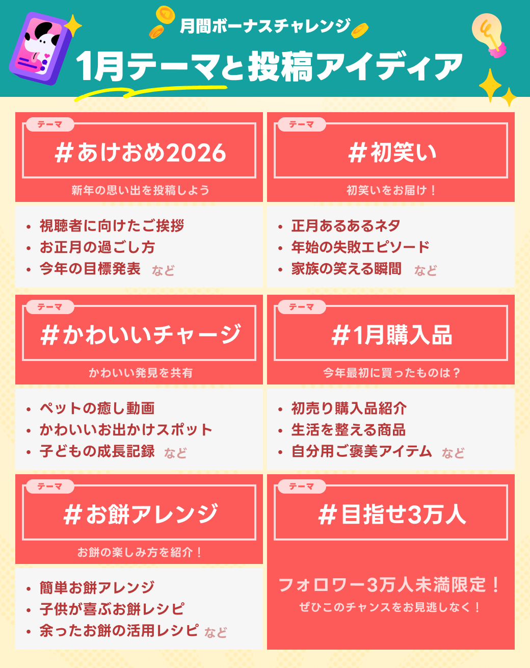 期間中に1投稿以上該当投稿をされ、該当動画の合計View数が多いクリエイターから、 投稿内容の優れた方を総合的に評価いたします。 - アクティブ賞