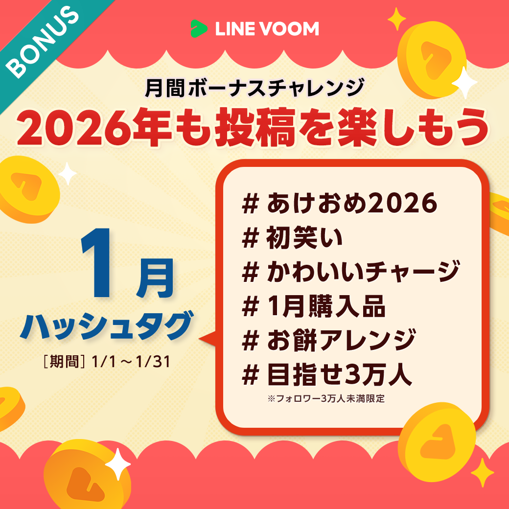 LINE VOOMでは、毎月賞金をご用意した「月間ボーナスチャレンジ」を開催いたします。