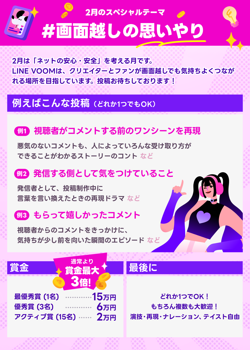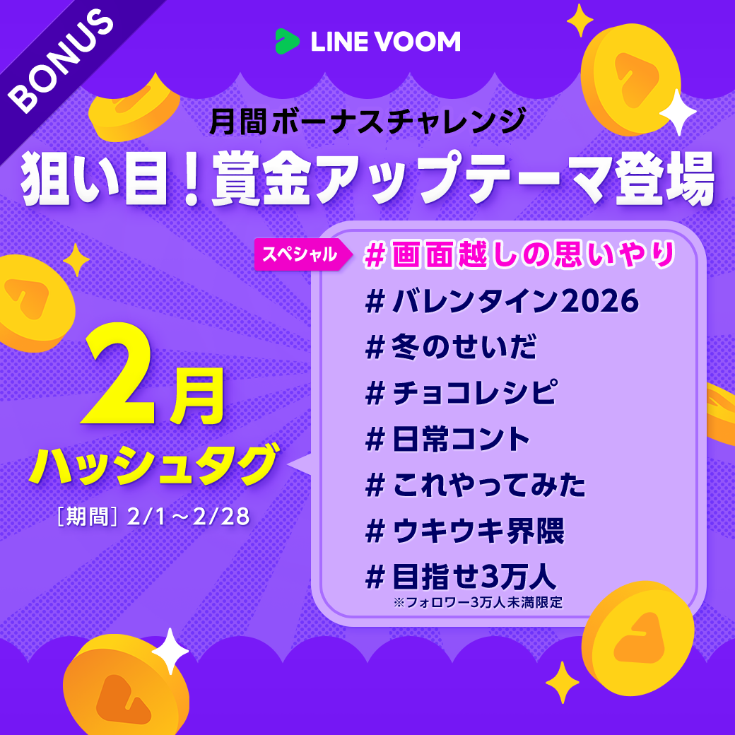 LINE VOOMでは、毎月賞金をご用意した「月間ボーナスチャレンジ」を開催いたします。